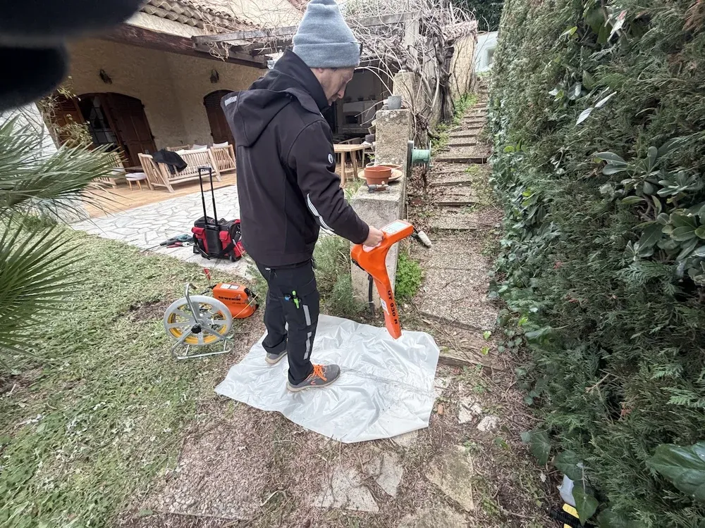 Lors de notre intervention à Antibes, nous avons commencé par un traçage réseau du jardin. Bien que nous n'ayons pas pu couvrir la totalité de la zone, notre expérience nous a permis de déduire avec précision l'emplacement probable du réseau. Ensuite, nous avons utilisé un gaz traceur pour détecter la fuite. Cette méthode, non invasive, garantit une détection précise sans endommager votre propriété.