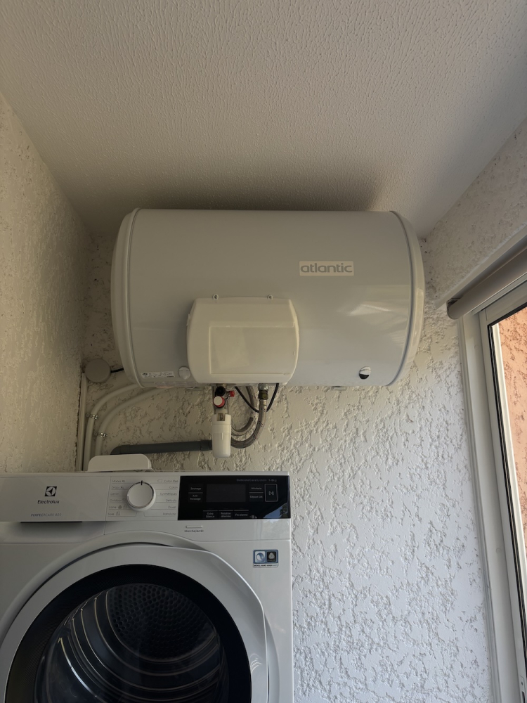 Les Plombiers d’Azur sont récemment intervenus à Villeneuve-Loubet pour le remplacement d’un ballon d’eau chaude horizontal de 100 litres.